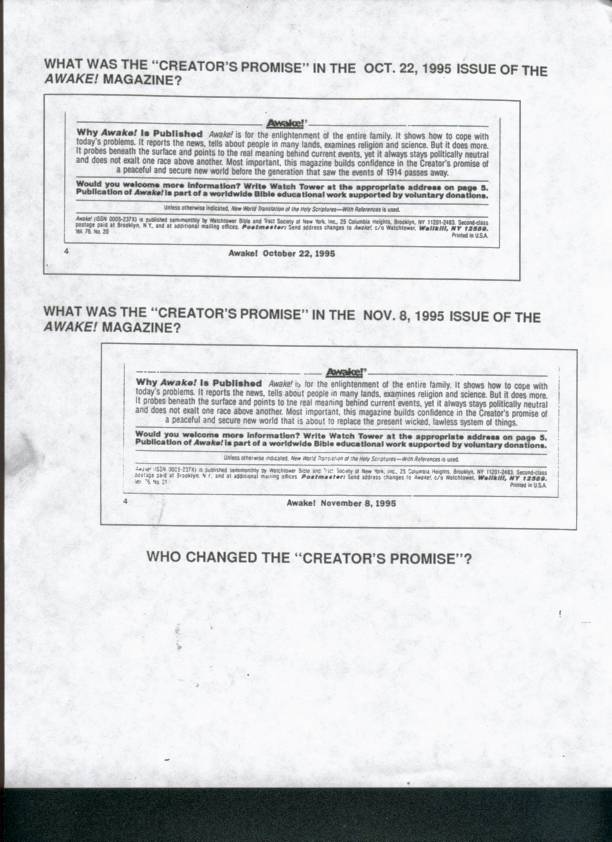 Jehovah’s Witness prior to the winter of 1995, this teaching was in your face