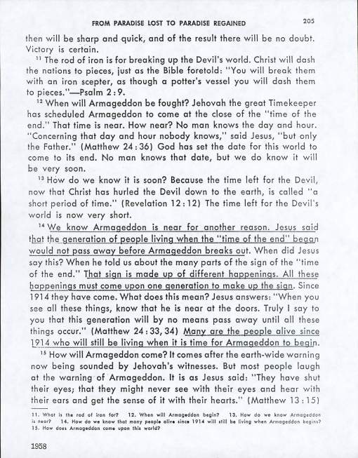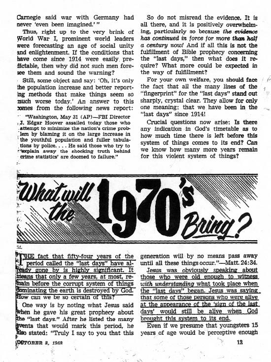 would occur within one generation of 1914. Witnesses lived their lives in anxious