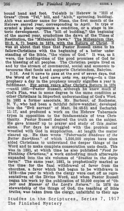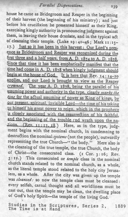 of Christ's Presence were not looking forward to 1914, but backward to 1874. My