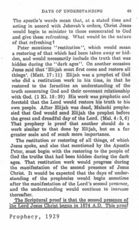 "To understand the events concerning the Lord's second presence from 1874